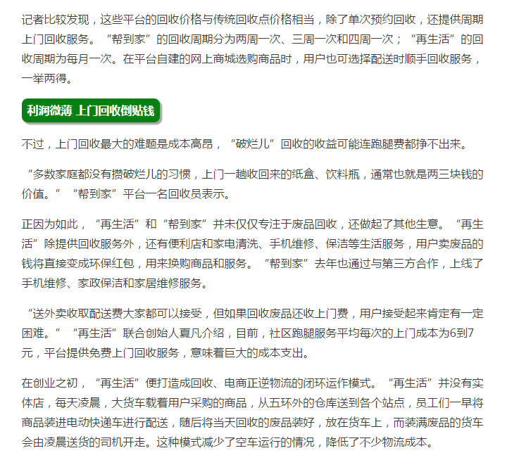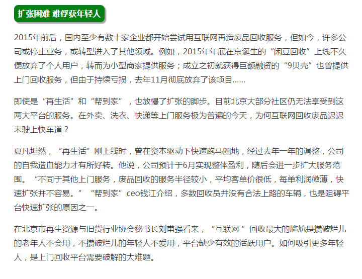 “互聯(lián)網(wǎng)+ ”回收廢品有點(diǎn)難